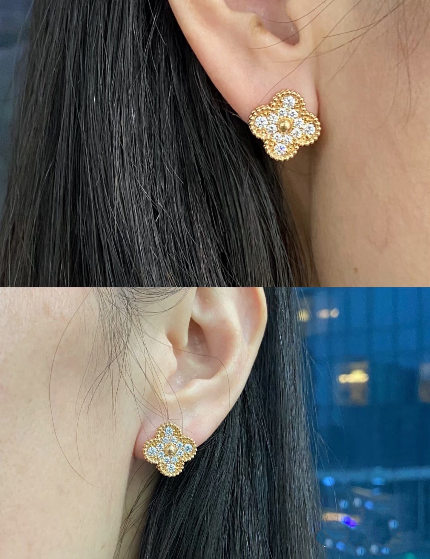 Zawieszka oraz kolczyki ozdobione są precyzyjnie osadzonymi cyrkoniami jubilerskimi, charakteryzującymi się wysoką przejrzystością i estetycznym połyskiem.
